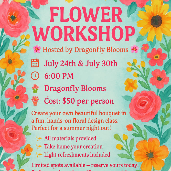 Price: $55.00Dragonfly Blooms Workshop-July 24th & 30th